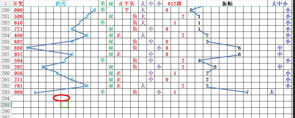 如上图4,012路分析012路跨度的趋势比较好,看好34567;