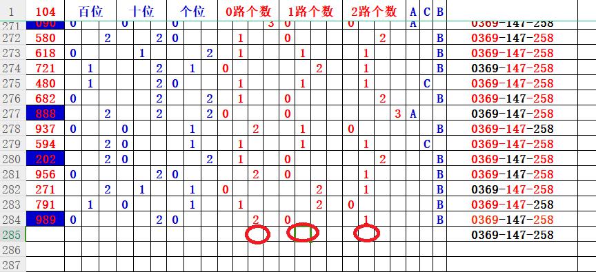 如上图56,012路分析1路出号的概率还是很大,本期可以从1路号入手做胆147中选;看好47胆码。