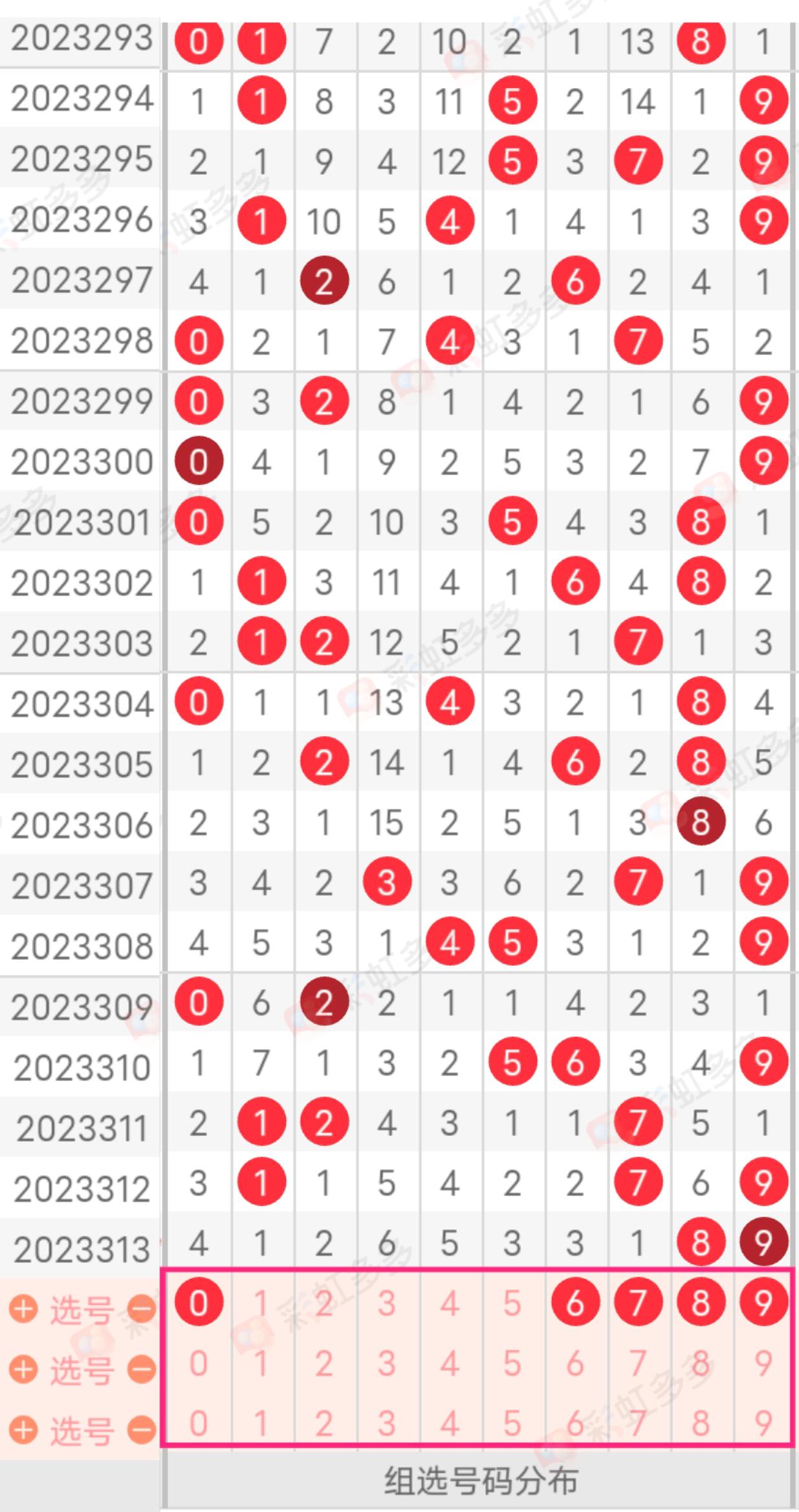 如图所示,在组选号码图中可见上期开出了组三形态:“899”。本期预测形态为组六,上期开出重号为“9”。本期预测重号为“8”组选号码分布预测:06789精选单式:870、540、578 以上内容就是本期的全部分析结果,感谢大家的支持与参考。注:以上内容,仅供参考。