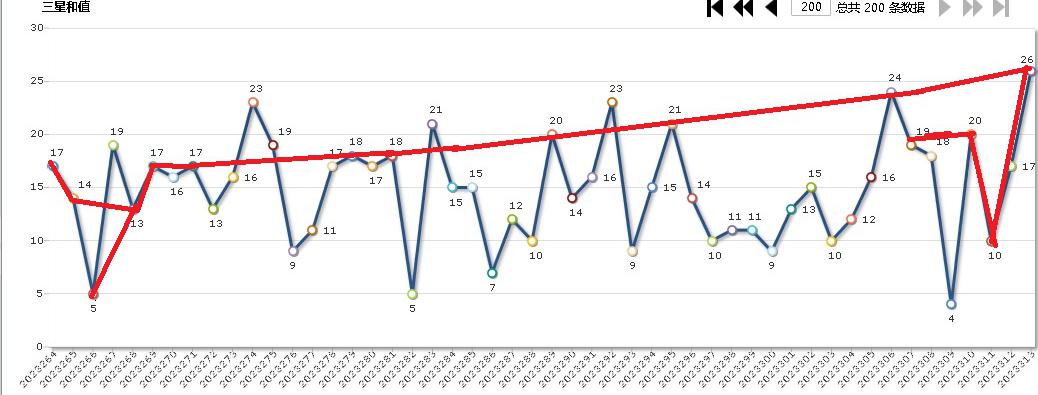 和值0-10:这是最常见的和值区间,本期也不例外,因此我们需要重点关注。 2. 和值11-20:这个区间的号码虽然较少,但也值得关注。3. 和值21-27:这个区间的号码相对冷门,但偶尔也会有爆冷的可能。