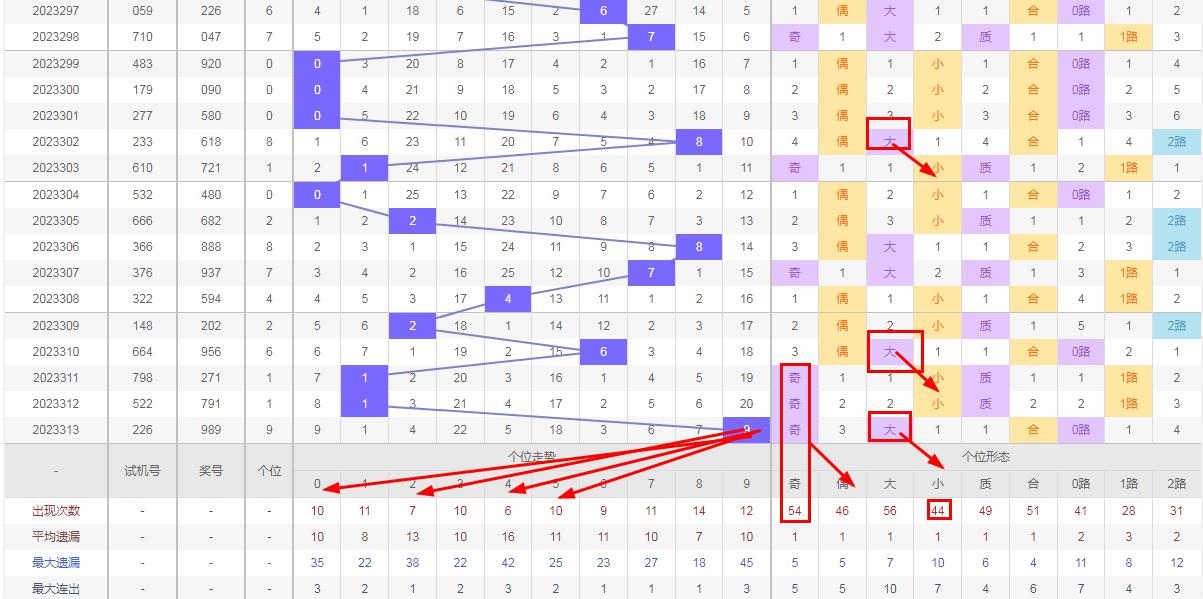 福彩3D个位分析:第313期个位号码9属于大数奇数,从以上个位走势图中可以看出近100期的大小比为56:44奇偶比为54:46大小奇偶数据上有点差异有需求但不是太明显,不太好看这时就要借助连线走势和遗漏数据来帮助我们缩水号码。上期个位落号“9”大奇数号码球,号码开出了大振幅,走出了8个振幅,上期我们在对个位号码研判时表示号码会有大数号码的开出,我们也给出来(12569)五个号码球,重点强调了1-5-6-9四个号码球的落位关系,那么本期我们在个位考虑振幅走势继续走中依然要转变思路考虑小数,具体考虑(1246)个振幅是我们主要的方向,那么在对个位落号情况进行系统的分析时我们可以明显的看到个位号码走势呈现大范围震荡,尤其是在号码的落位特点上表现的尤为突出,那么我们本期我们在个位研判时就要注意号码的风险,避免出现踏空。个位偶数号码连续出了2期小数回补后有可能返回大数。因此福彩3D第314期个位看好偶数0246.防守大数奇数7