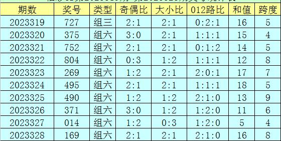 上期回顾:福彩3D第2023328期开奖号码为169,组选类型为组六,奇偶比为2:1,大小比为2:1。