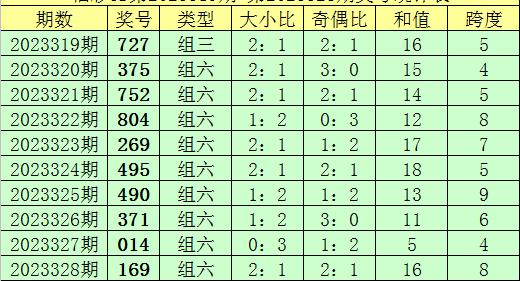 其中大小比2:1,奇偶比2:1,和值16,跨度8。