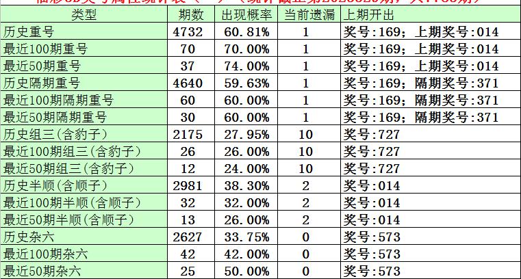 福彩3D上期奖号为573,上期重号轮空。最近100期重号开出70期,开出比例70%,最近50期重号开出37期,开出比例74%,最近10期重号开出6期,出现比例为60%,本期注意重号出现。