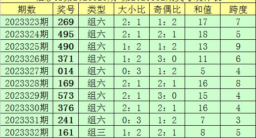 其中大小比1:2,奇偶比2:1,和值8,跨度5。