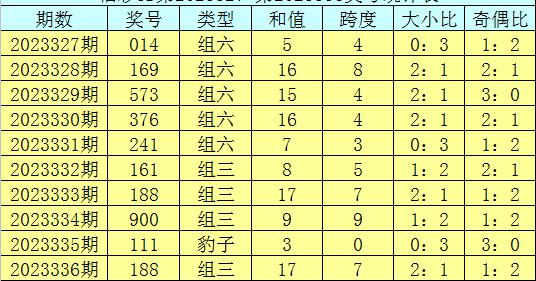 福彩3D23337期 本重防跨度7,直选关注奇偶偶组合