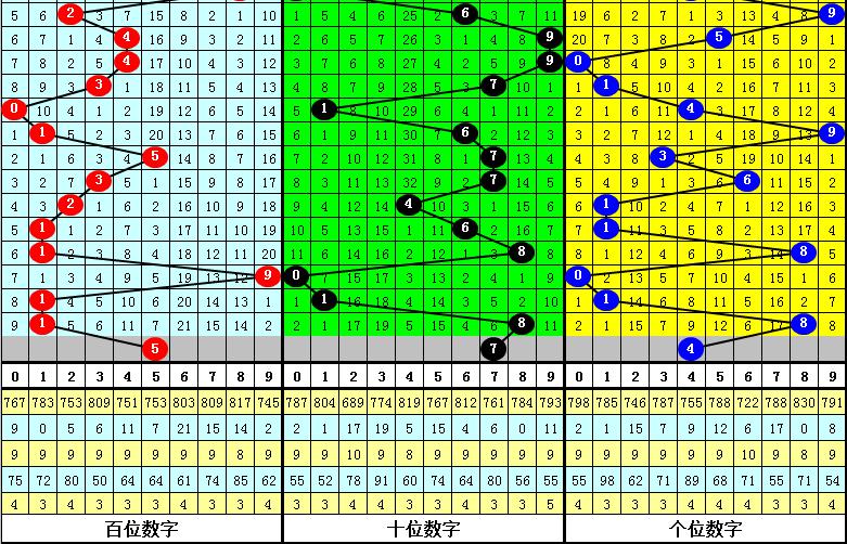 第三位上期开出奖号8,走大7点,本期看好该位走小,参考号码4。