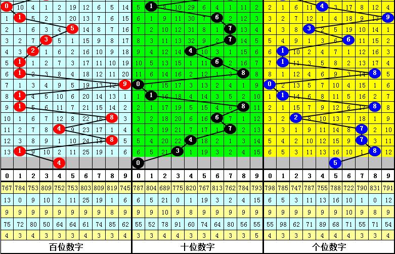 百位号码:连续两期百位出号分别为:8-1,历史上福彩3D连续两期前后分别出号8-1的奖号共出现85次。在百位8-1的奖号现象出现时,近15期下期分别出号:885-818-535-706-019-055-945-712-645-210-743-380-973-124-030;