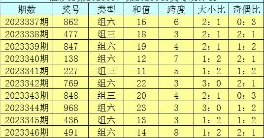 类型判断:上期奖号为491。号码1近10期开出2次,走势较冷,号码4出现5次,大热,号码9出现3次,走势较冷,上期总体遗漏走温,本期注意温码奖号。