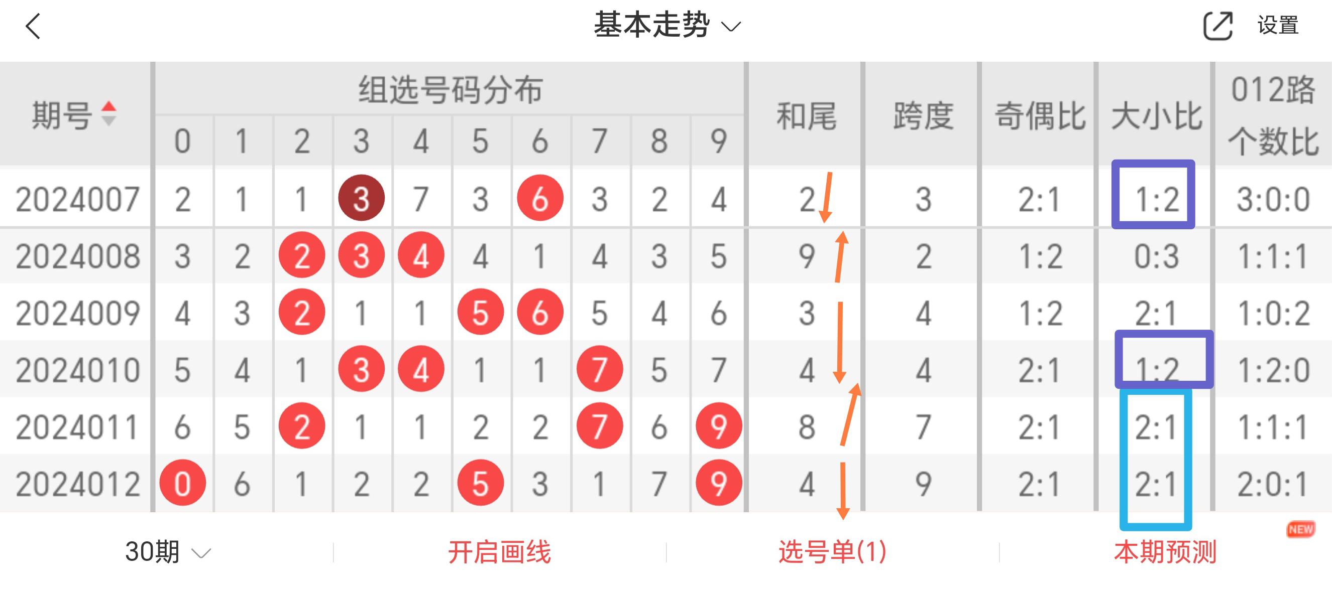 >福彩3D大小比:近二十期大小数出球比较正常,上期开出2:1,本期可关注1:2。