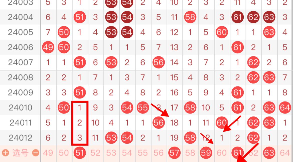 第四区间上期开出了4个号码,本区间近期表现一直比较稳定,温热走势在持续,本期的号码数量也不会太少,4-5码左右是合适的,上期5字头号码回补了三枚,在咱们的预料之中,那么本期5字头号码应该会稳定在2码左右,6字头号码可在热态区域60-63之间选择斜连号码2枚!