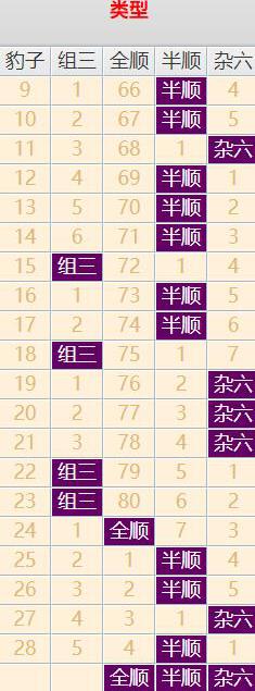 上期开出了半顺类型,隔期回补,那么根据走势规律本期首先要关注的就是杂六的跟随走势和半顺的落重,这两个走势都是符合对称走势的,根据周六走势图来看半顺的走势会更好一些,最后就要防守全顺的开出!