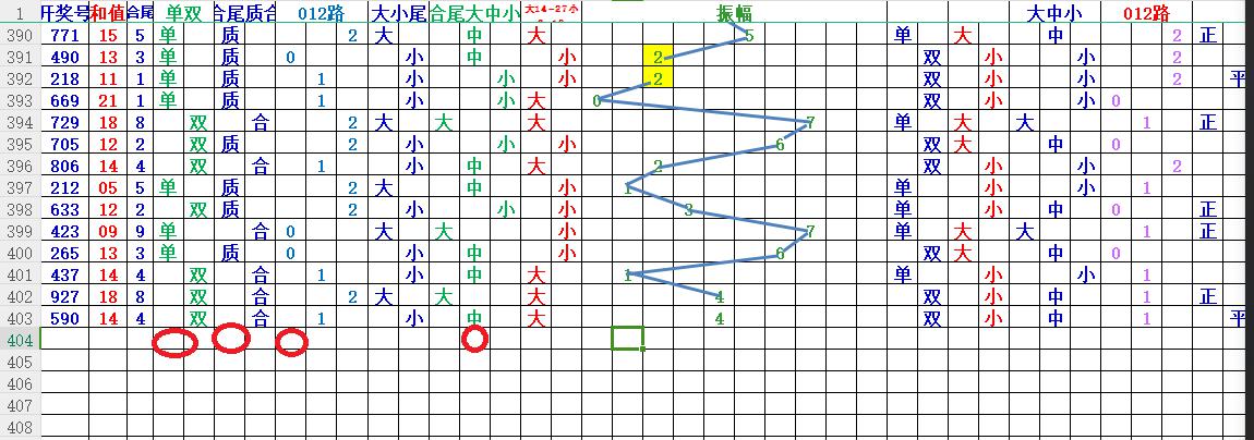 如上图56,012路分析0路出号的概率还是很大,本期可以从0路号入手做胆0369中选;看好39胆码。