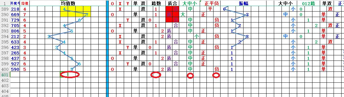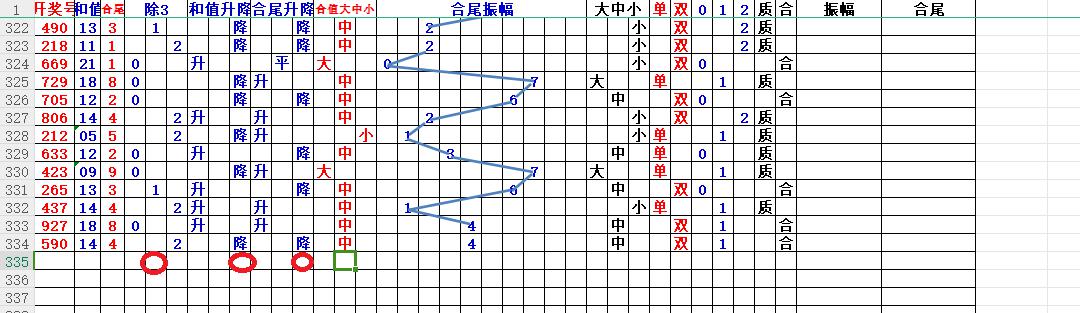如上图3,和尾升降平来分析,和尾升的概率大,关4以下的尾数;例如:0123 尾防 6尾。