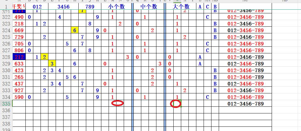 如上图56,大中小分析,小号012继续出,小号012最好出1个。