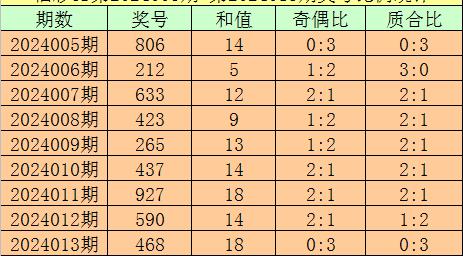 开奖回顾:福彩3D第2024013期:奖号为468,奖号质合比为0:3,大小比为2:1,跨度为4,类型为组六。