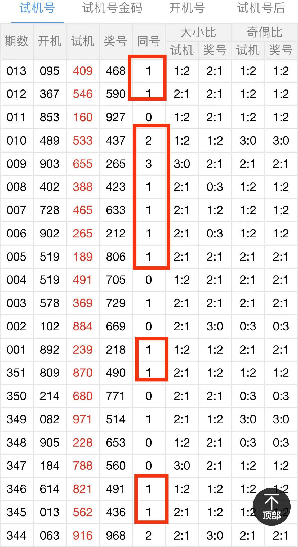 3.通杀还可以利用开奖号以及试机号,这两个一般一期最多重复一码,我们确定其中一码之后就可以排除另外两码,达到杀号的效果。时机号18时左右更新,大家结合试机号自行参考。