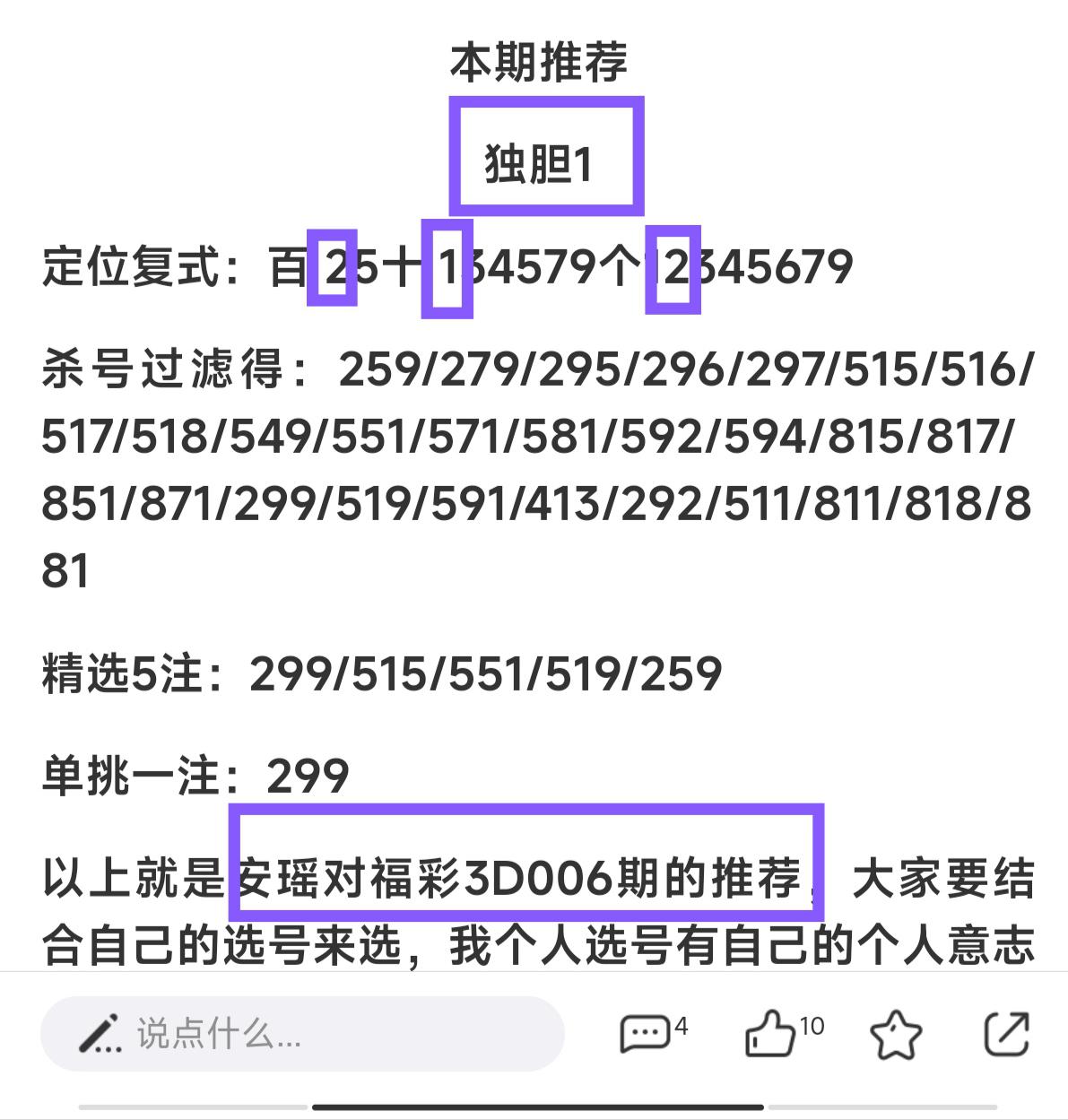 战绩回顾:004期定位复式中直选。006期独胆中,定位复式中直选。007定位复式中直选。008期命中尾注命中组选。011期定位复式中。