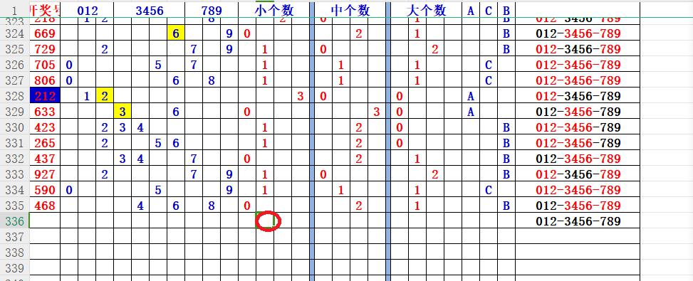 如上图4,大中小分析来看中大数跨度比较好也就是3456789。