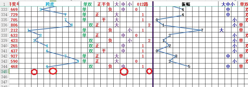如上图4,012路分析012路跨度的趋势1路比较好,看好357;
