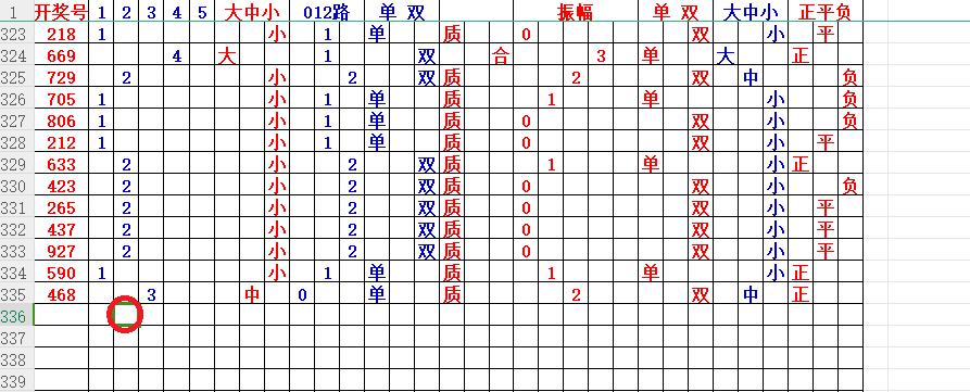 如上图8,012路分析2路出的概率大,本期可以从2路号入手,也就是23数。