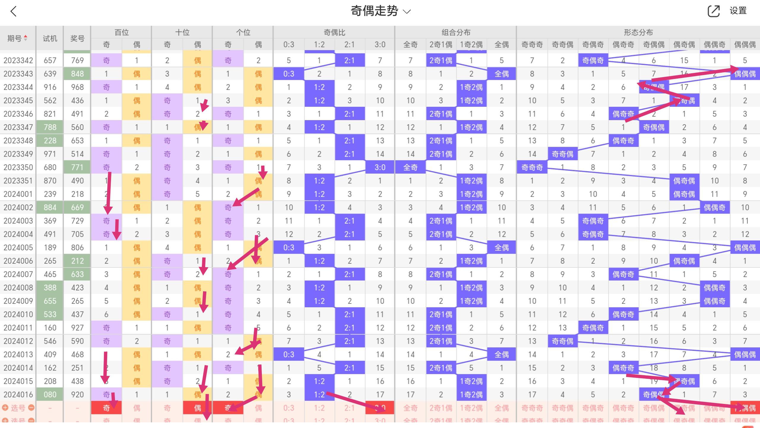 本期奇偶比很可能会保持1:2,或者转变为3:0,形态分布可能为奇奇奇、偶偶奇、偶偶偶、偶奇偶。百位很可能为奇数,十位很可能为偶数,个位可能为奇数。所以形态分布也有可能是奇偶奇。如下图所示:
