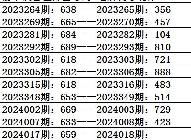 一、上期开奖:福利彩票3D第2024017期奖号为659。奇偶比为2:1,大小比为:3:0,奖号和值为20,奖号跨度为4。