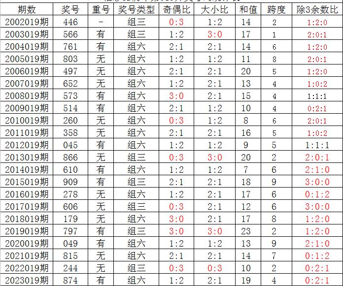 其中,组三号码开出6次,组六号码出现16次,上期奖号为组六号码,本期预计继续开出组六号码。