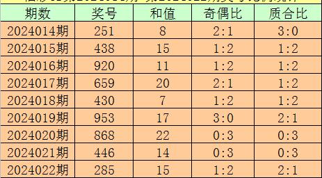 开奖回顾:福彩3D第2024022期:奖号为285,奖号质合比为2:1,大小比为2:1,跨度为6,类型为组六。