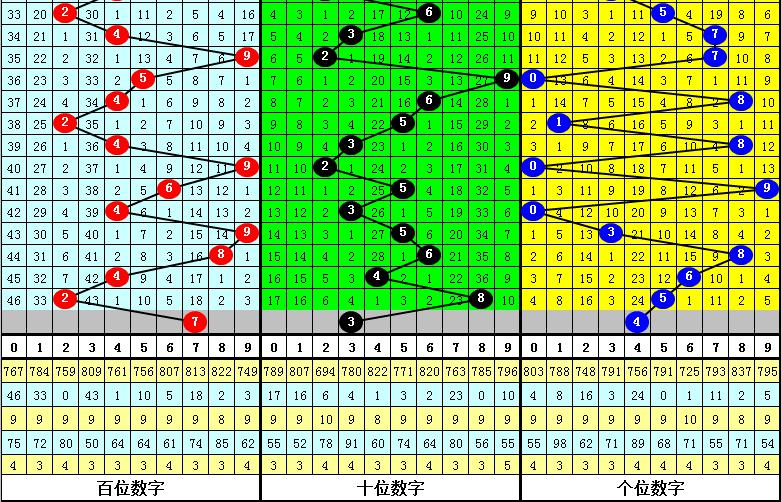 百位分析:上期出现号码2为:小号、质数,在连续9期开奖中,百位分别为:小号、质数:2;小号、合数:4;大号、合数:9;大号、合数:6;小号、合数:4;大号、合数:9;大号、合数:8;小号、合数:4;小号、质数:2,其中大号频次较低,质数开出较热,百位本期预计开出大号、质数。