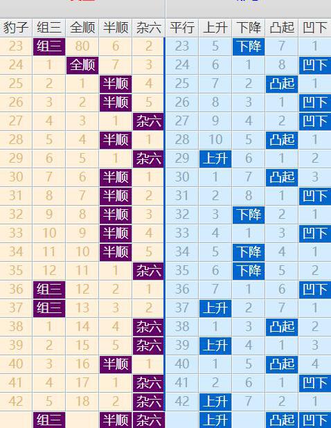 上期杂六类型落重,符合对称走势,那么本期首先要关注的就是半顺的走出,其次在周六走势图中杂六连续走出3期概率也是很大的,要予以关注,最后就是要防守组三的落点落位!