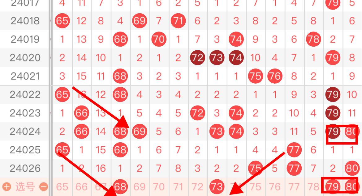 第五区间上期开出了75 77 80三个号码,6字头号码断层,本期有概率会回补,可以关注1-2枚,65 68这两个隔期回补号码考虑走出1个,另外7字头号码适当关注一下斜连走势,最后就是尾部区域的组合号码79 80本期有概率会联合走出!