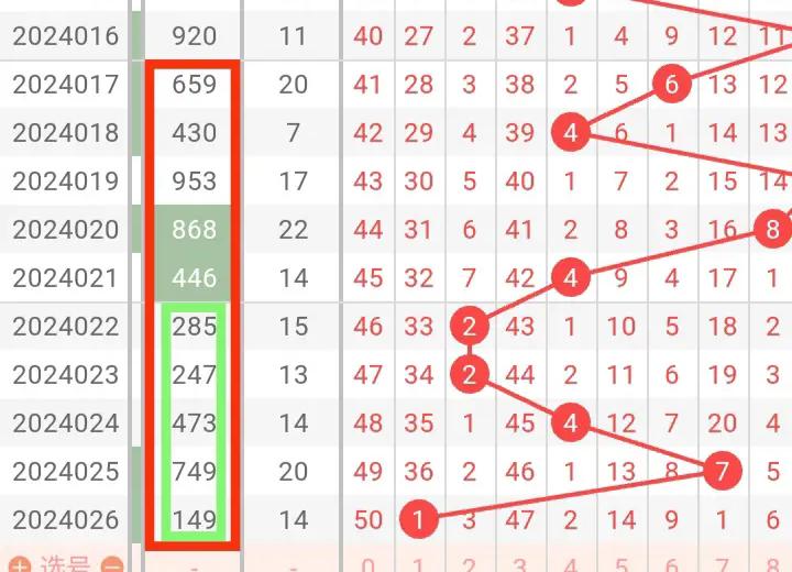 本期热号149中,最多只会出1个号。温号237中,可能会出1个号。冷号0568中,至少会出1个号。本期两码47、49、59出的可能性小,所以本期出号就偏向于小号、偶号。