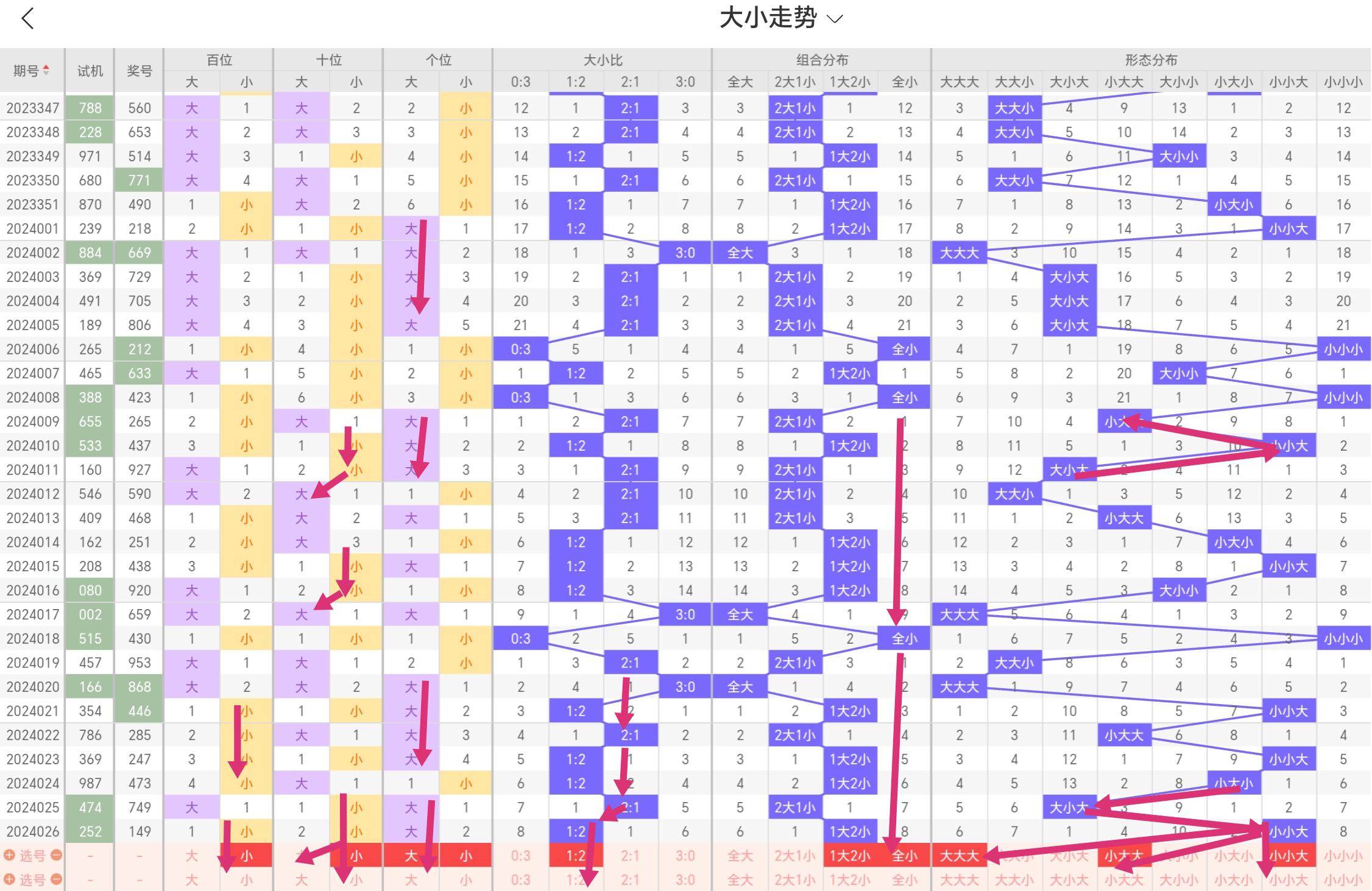 >大小比走势分析: