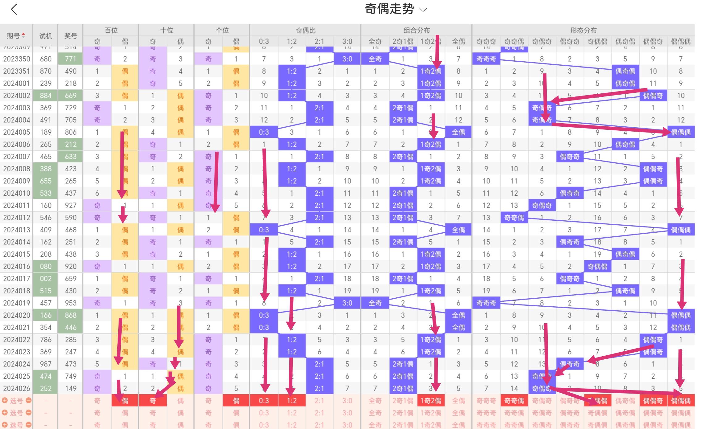 奇偶走势分析: