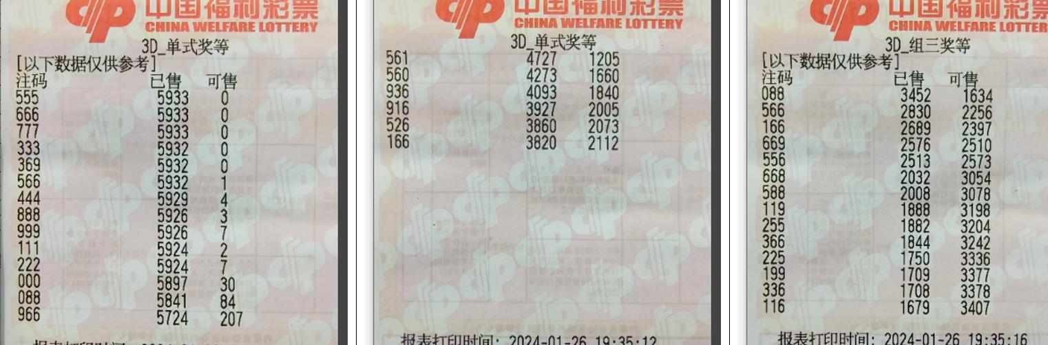2024027期福彩3D组号
