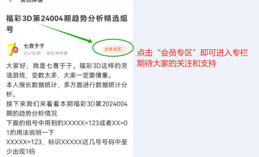 目前只有更新了为彩网APP才能看到会员专栏