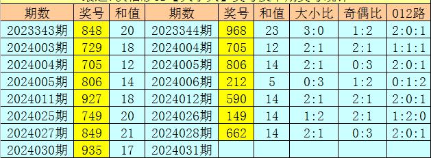 开奖回顾:福彩3D第2024030期奖号为935。奖号为:组六,大小比为2:1,大小类型为:大小大。