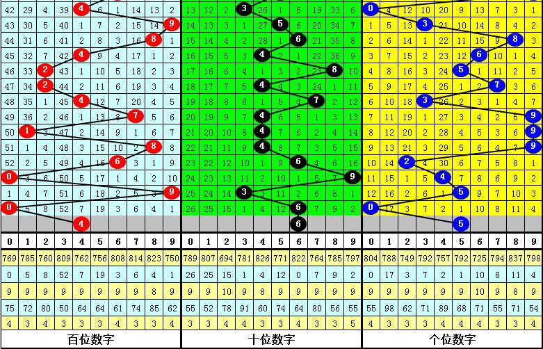 (2)在号码频次方面,开出个数最少的三个号码为:1、7、2,一般来说这三个号码不会同时出现,本期杀一码1;开出个数最多的四个号码分别为:4、9、6、0,本期看好这四个号码中包含1-2个开奖号码,胆码参考0。4。