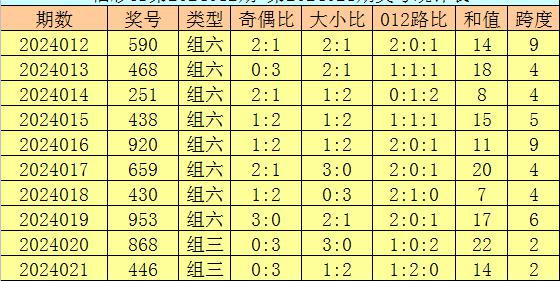 上期回顾:福彩3D第2024031期开奖号码为060,组选类型为组三,奇偶比为0:3,大小比为1:2。