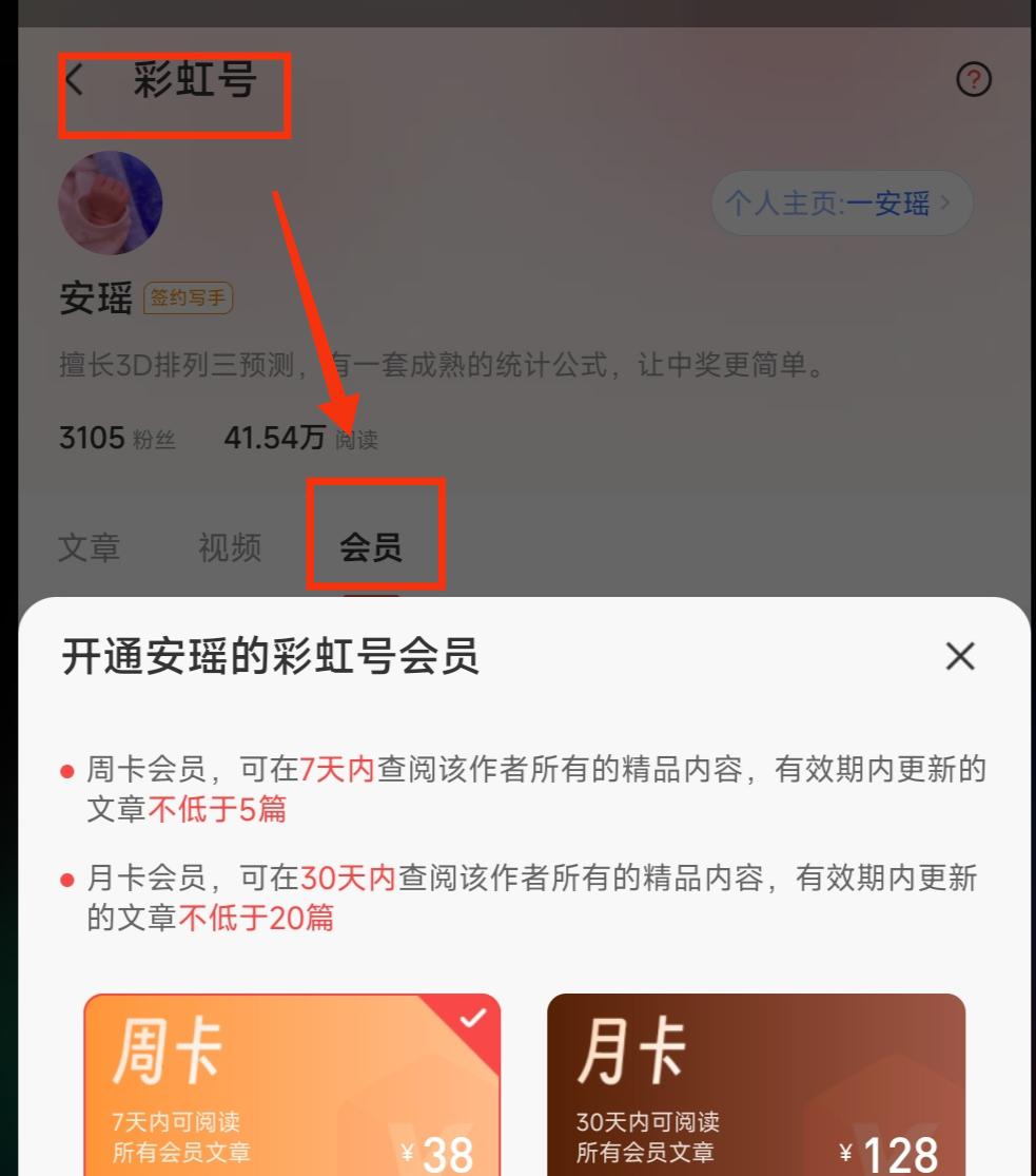 更多资讯以及号码推荐放入会员专属文章,请移步会员文章查看。查看方式。1、升级客户端:升级路径【我的】-右上角【设置】检查更新,升级至最新版本。2、点击我文章头像进入我主页,主页下方选择会员,也可以文章头像旁会员专区即可进入。建议购买周卡或者月卡较为划算。