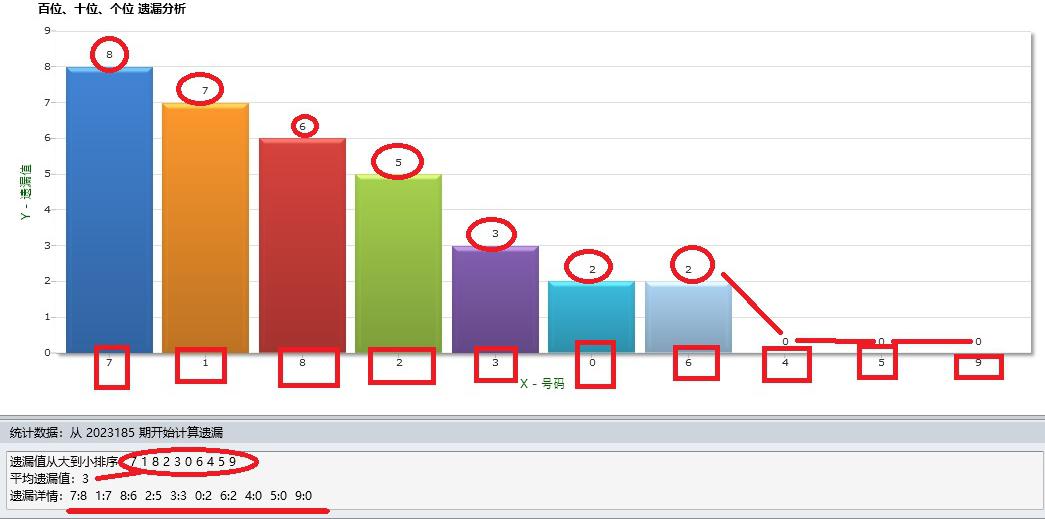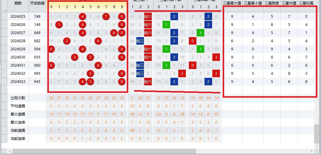 2.号码冷热分布从高到低依次为:8,9,4,2,7,1,6,3,5,0。通过分析可以发现,号码8和9较为热门,其次是号码4和2,而号码7、1、6、3、5和0相对较冷。