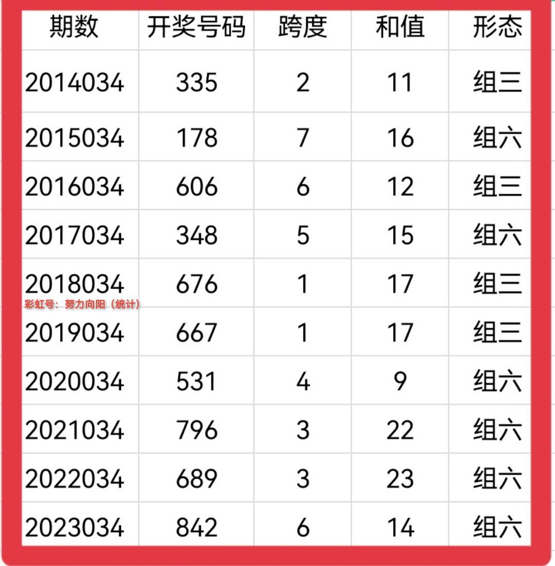 一:依据往年十期号码,我们先来分析三位出号范围以及跨度和值范围: