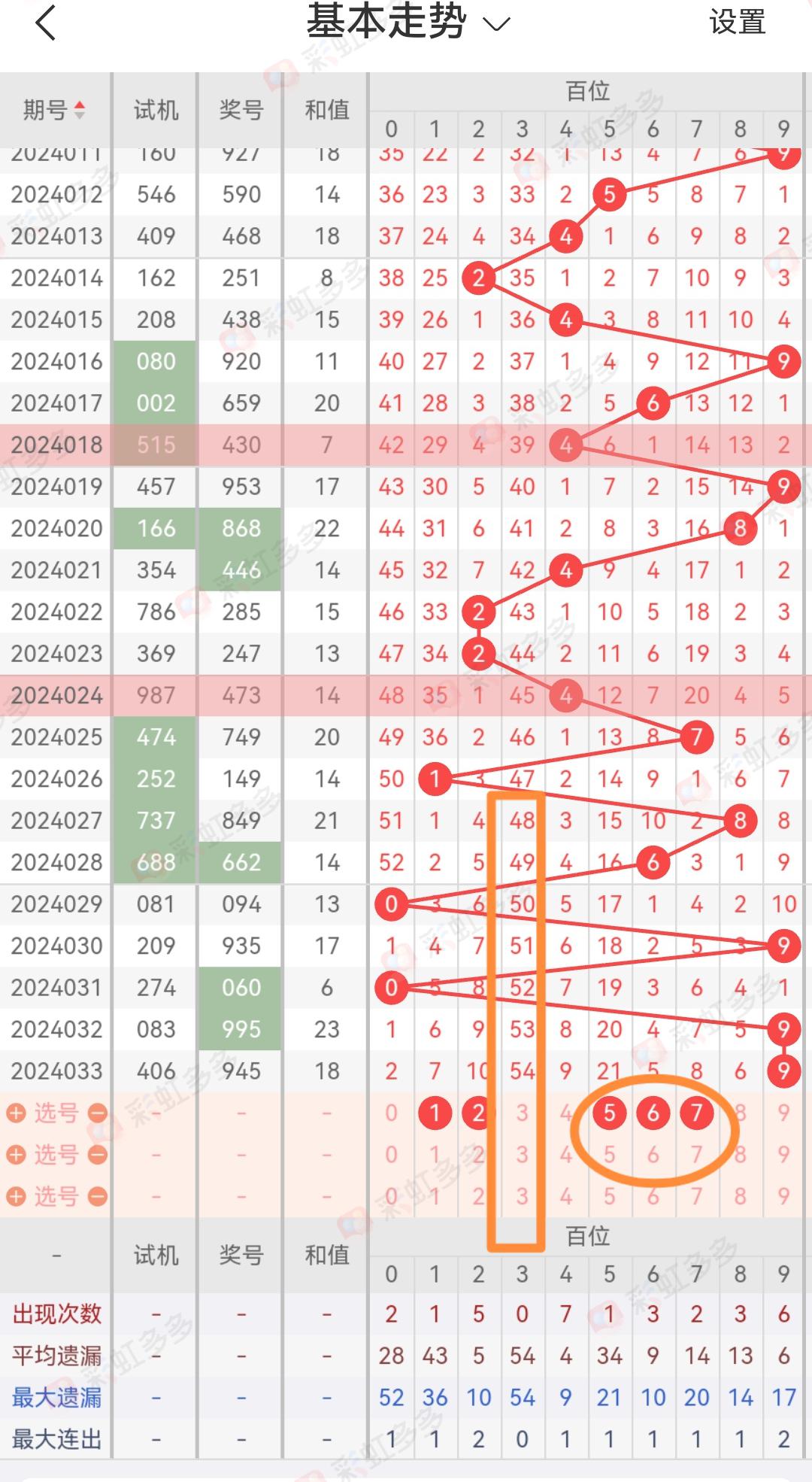 从034期开出的号码来看个位十位百位的号码球遗漏期数,以及个位十位百位的号码球走势!