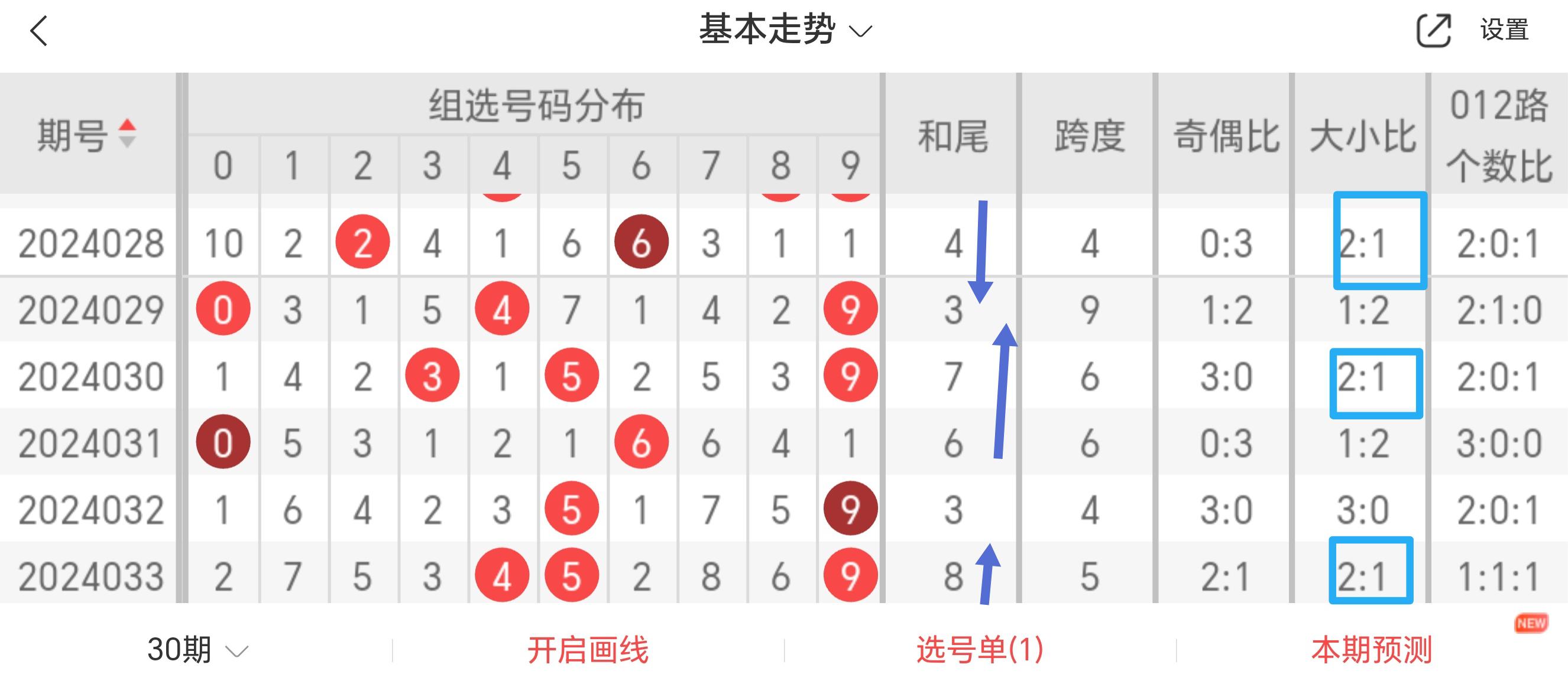 >福彩3D大小比:近二十期大小数出球比较正常,上期开出2:1,本期可关注1:2。