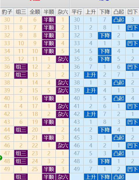 上期开出了半顺类型,根据最近的类型走势判断分析,首先咱们要关注的就是组三的规律回补,其次就是半顺的跟随走势,最后就是半顺的再次走出;