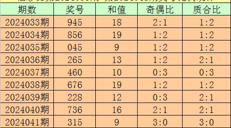 开奖回顾:福彩3D第2024041期:奖号为315,奖号质合比为3:0,大小比为1:2,跨度为4,类型为组六。