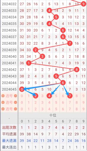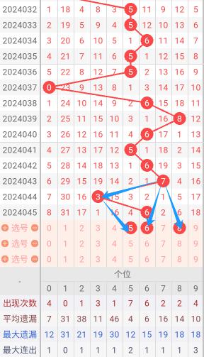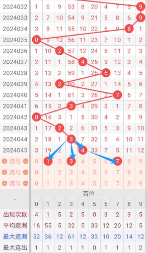 现在我给大家分析下,本期百位可能开出的号吗,上期开出了4,根据走势图我们可以看到百位,037期开出了4号码球,038期开出了6号码球,039期开出了2号码球,040期开出了7号码球,041期开出了3号码球,042期开出了4号码球,043期开出了2号码球,044期开出了3号码球,045期开出了4号码球,根据这六期的走势和历史50期内的走势对比,我们可以先考虑本期可能会出小号,下面我给大家推存百位可能开出的几个号,个人比较看好137,百位我们就先暂定这两个号。本期关注1-7之间的号码,同时关注遗漏期数较小的号码。按最近遗漏走势,开了遗漏期数较小之后开遗漏期数大的可能性比较大。