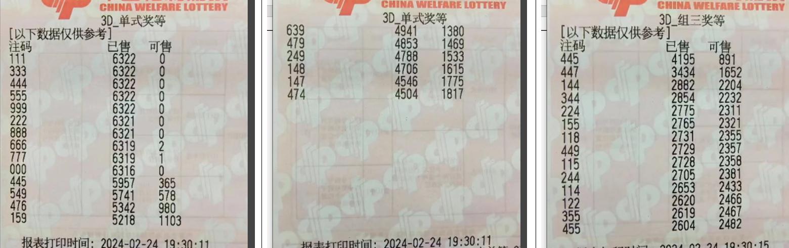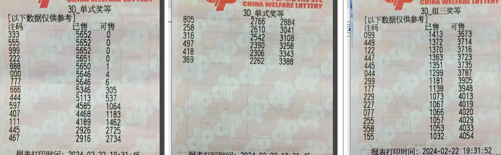 福彩3D有几个数据非常值得我们研究,一个是试机号(一般是下午6点左右发布),另一个就是每期的限号数据(也就是当期哪些号码已经达到上限,不能再打进去了),我主要是统计近三期的限号数据(不同地区和不同时间数据会有变化),个人感觉这个限号数据代表大家看重的号码或者某种趋势(可以理解成冷热程度),同时考虑大家看号的数据具有一定的延续性,值得我们参考研究,接下来我们统计一下近三期的数据,福彩3D限号数据有三个类型,分别是单式、组三、组六,分别都有20组号码,我们分别分类进行出次统计,我主要取前四码来做胆码,并分别拆分为两码作为缩水参考使用。