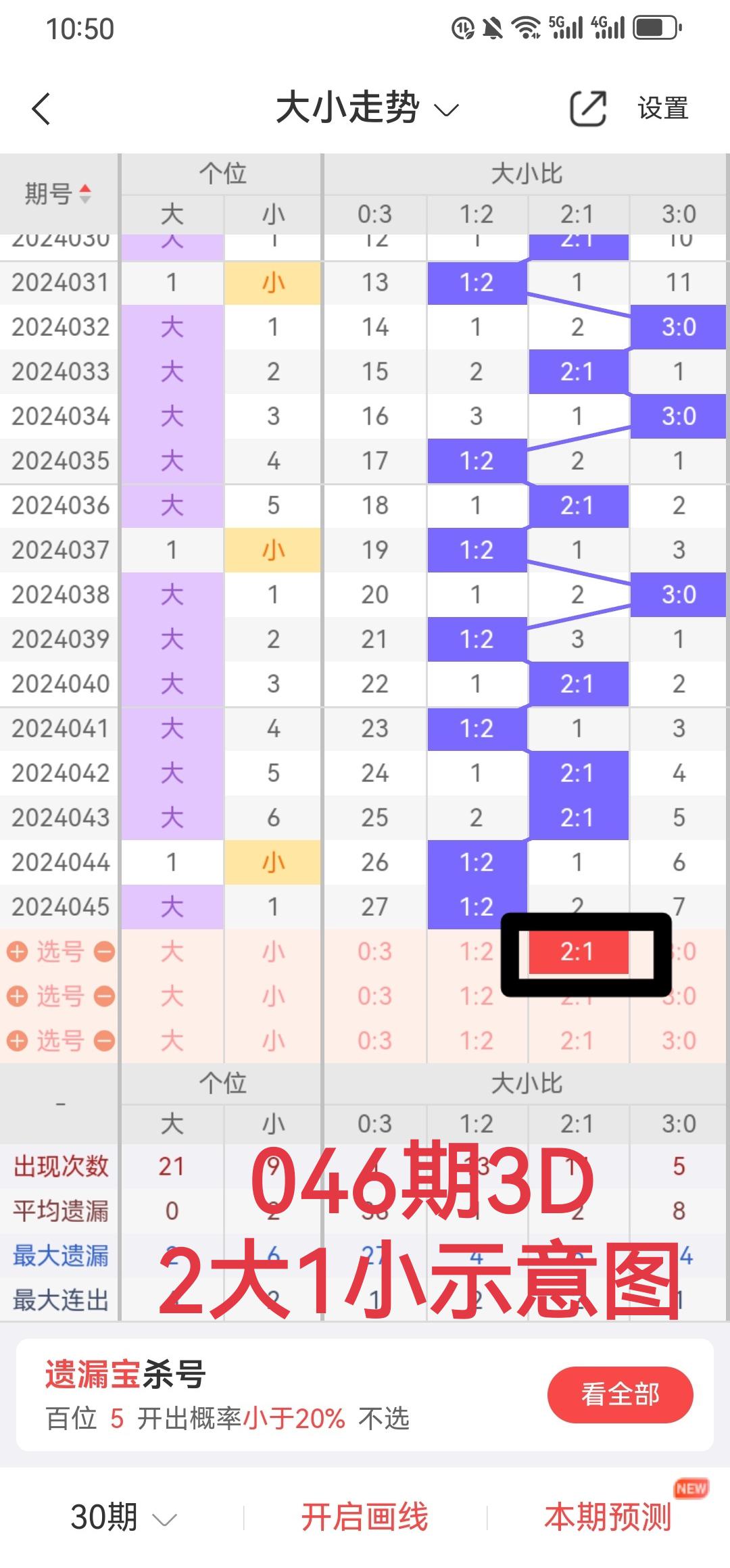 >单挑号码就是胆码,开年之后,只错了一次。